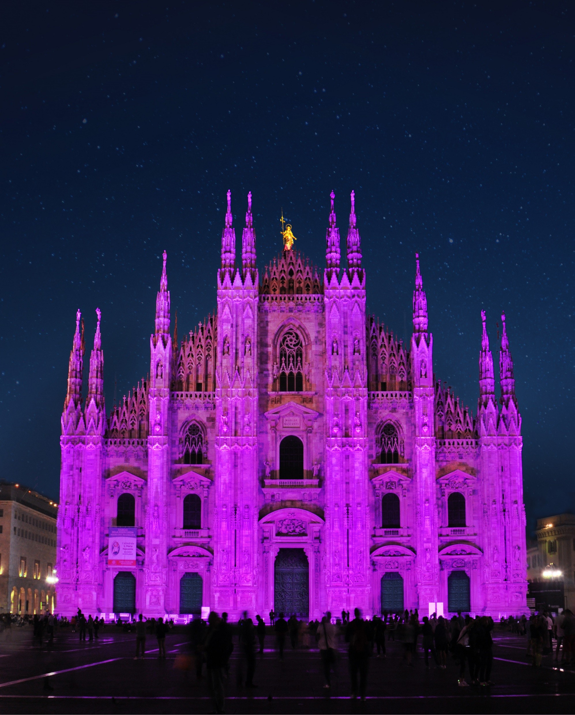 Il 27 settembre, a sostegno dell’iniziativa, il Duomo di Milano sarà illuminato di rosa, con il sostegno della Veneranda Fabbrica del Duomo di Milano e con il Patrocinio del Comune di Milano. Dall’1 ottobre faranno altrettanto decine di palazzi comunali e monumenti in tutta Italia, grazie alla collaborazione con ANCI – Associazione Nazionale Comuni Italiani.